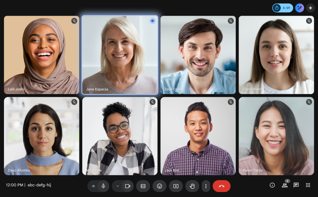 Google Meet のサイドバーで会議タイマーを作成できるようになりました。主催者 / 共同主催者は、管理機能がオンの場合にタイマーを管理できます。管理機能がオフの場合、会議参加者であれば誰でも管理することができます。タイマーを開始すると、すべての会議参加者に表示されます。開始後のタイマーは一時停止またはキャンセルすることも可能です。