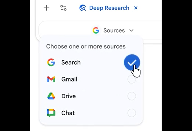 以前は、ユーザーがDeep Research を補完するためにGoogle ドライブから個別ファイルを手動でアップロードする必要がありました。これからは、Deep Research がメールやチャットを含むWorkspace コンテンツから安全に情報を取得し、関連する文脈をレポートに反映させることが可能になります。