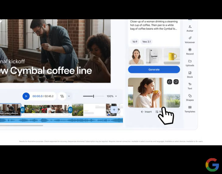 Google Vids のVeo 3.1 搭載新機能「Ingredients to Video」機能で、8秒の動画クリップを作成しましょう。
