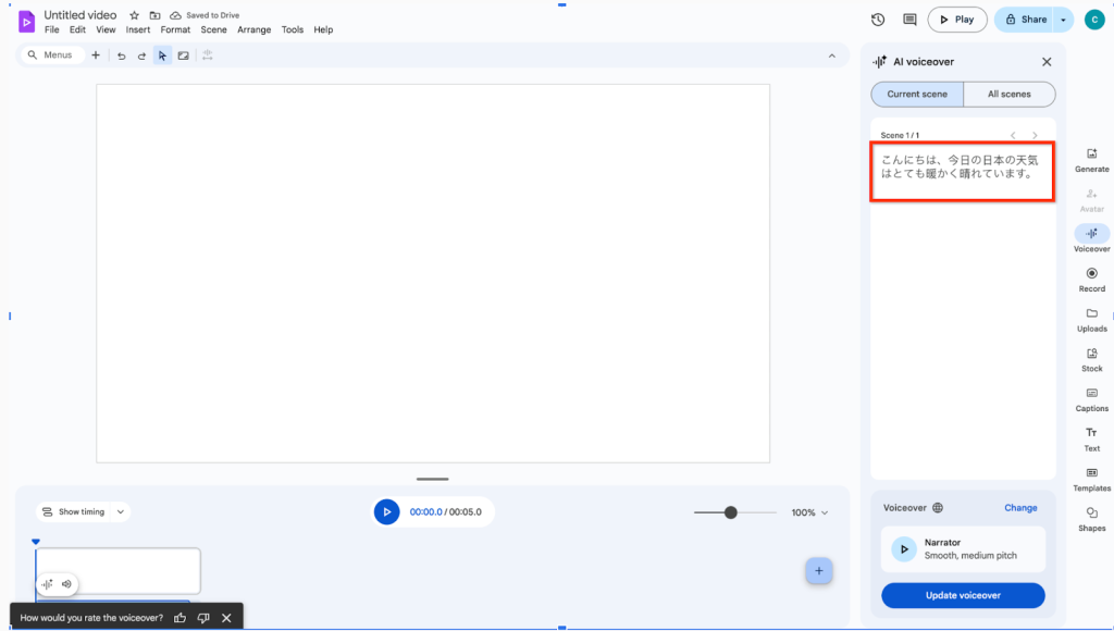 Google Vids での AI ナレーション生成